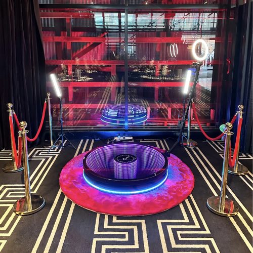 A 360 degree rotating video booth that allows users to instantly share to their phones.